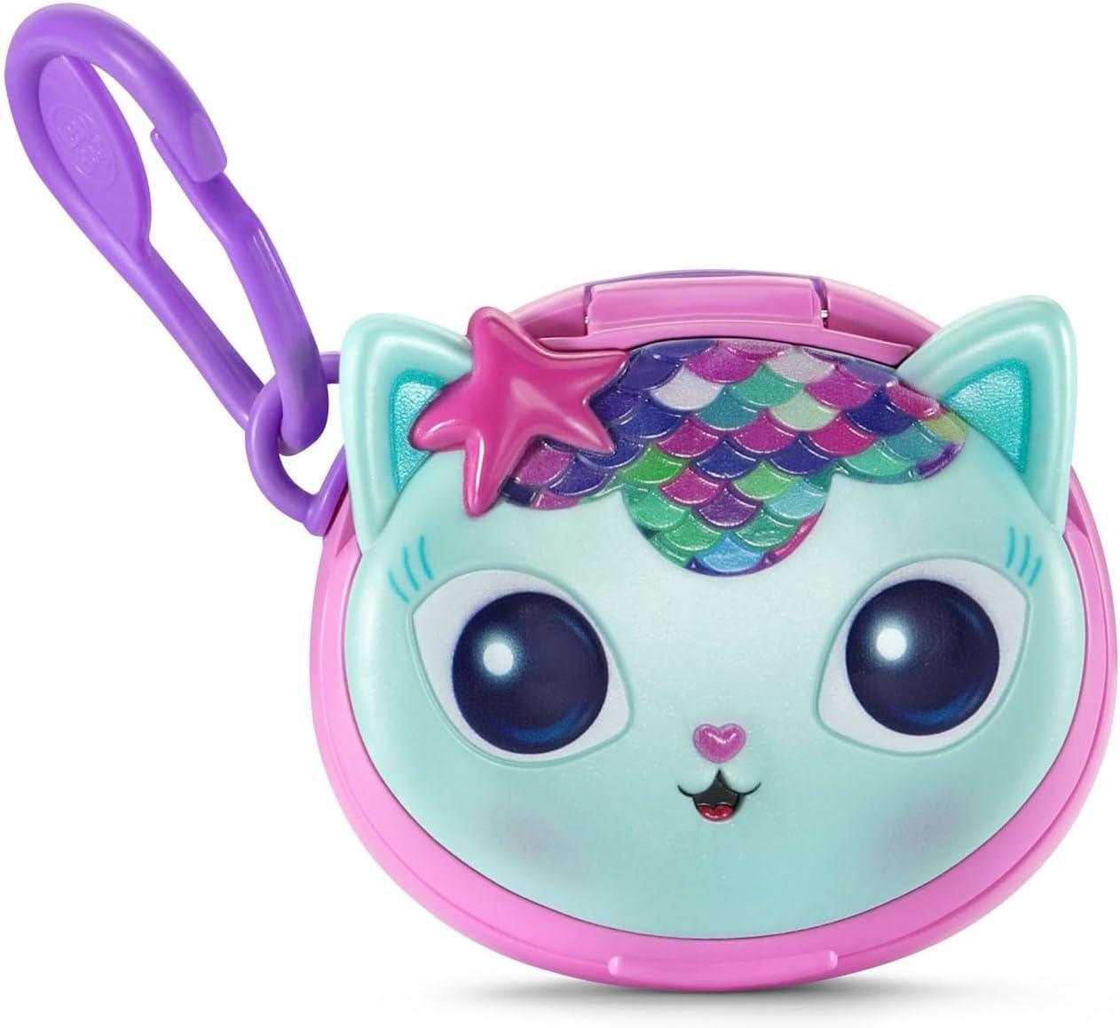 Dive in and play with MerCat and the Gabby Cats from DreamWorks Animation's Gabby’s Dollhouse! This compact version of MerCat includes four a-meow-zing games that help build math, memory and problem-solving skills. Pop shapes and bubbles, try to find Gabby, Pandy Paws, Cakey Cat, and other kitty friends in a game of hide-and-seek, dance with DJ Catnip, and play a game or two of tic-cat-toe with MerCat. Practice spa science and whip up a potion using math skills with MerCat. Try making a cat-tastic float spray or an a-meow-zing shrink potion just like in the show! Clip her to your backpack and take her along on all your adventures. Snap, snap spa science! Intended for ages 3+ years. Requires 3 AAA batteries. Batteries included for demo purposes only. New batteries recommended for regular use.