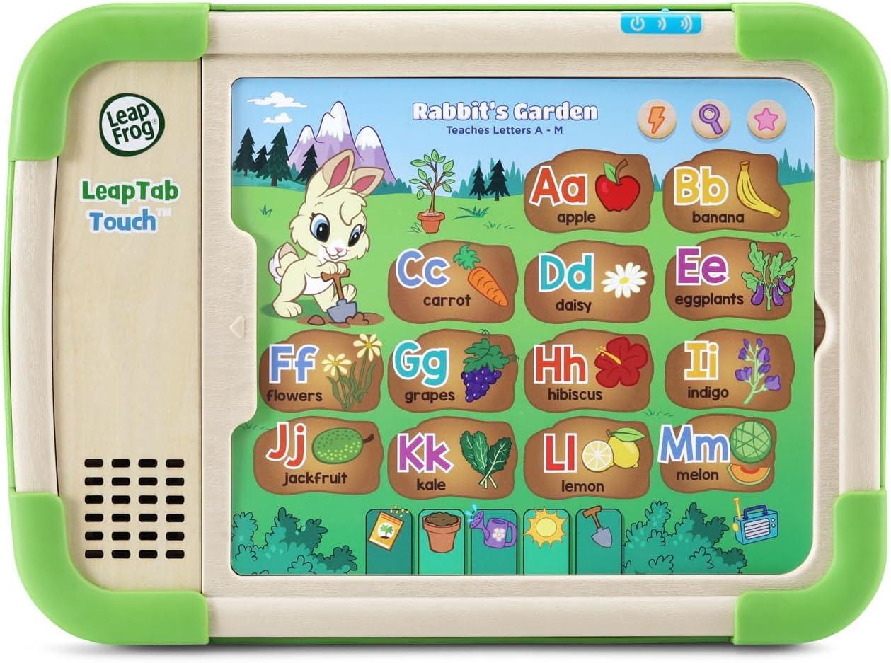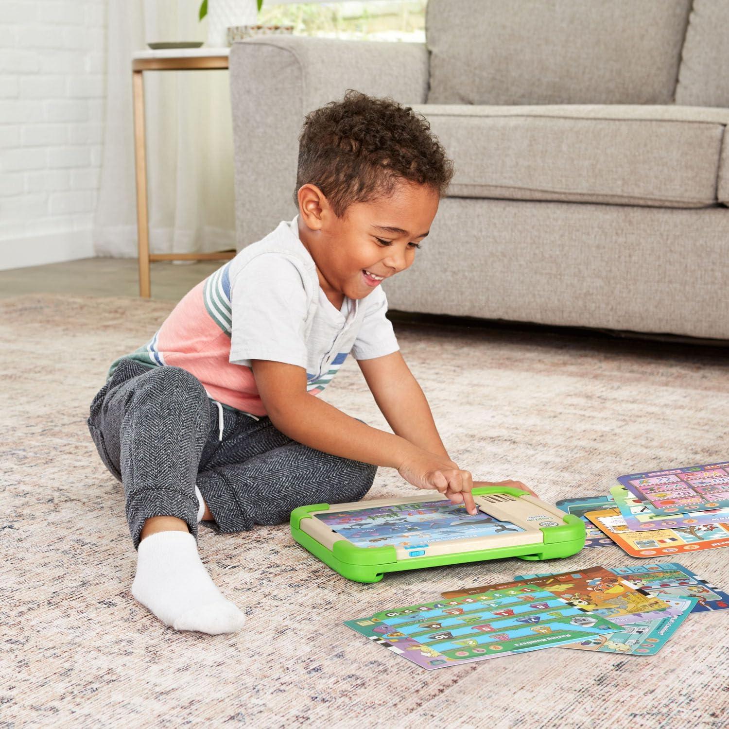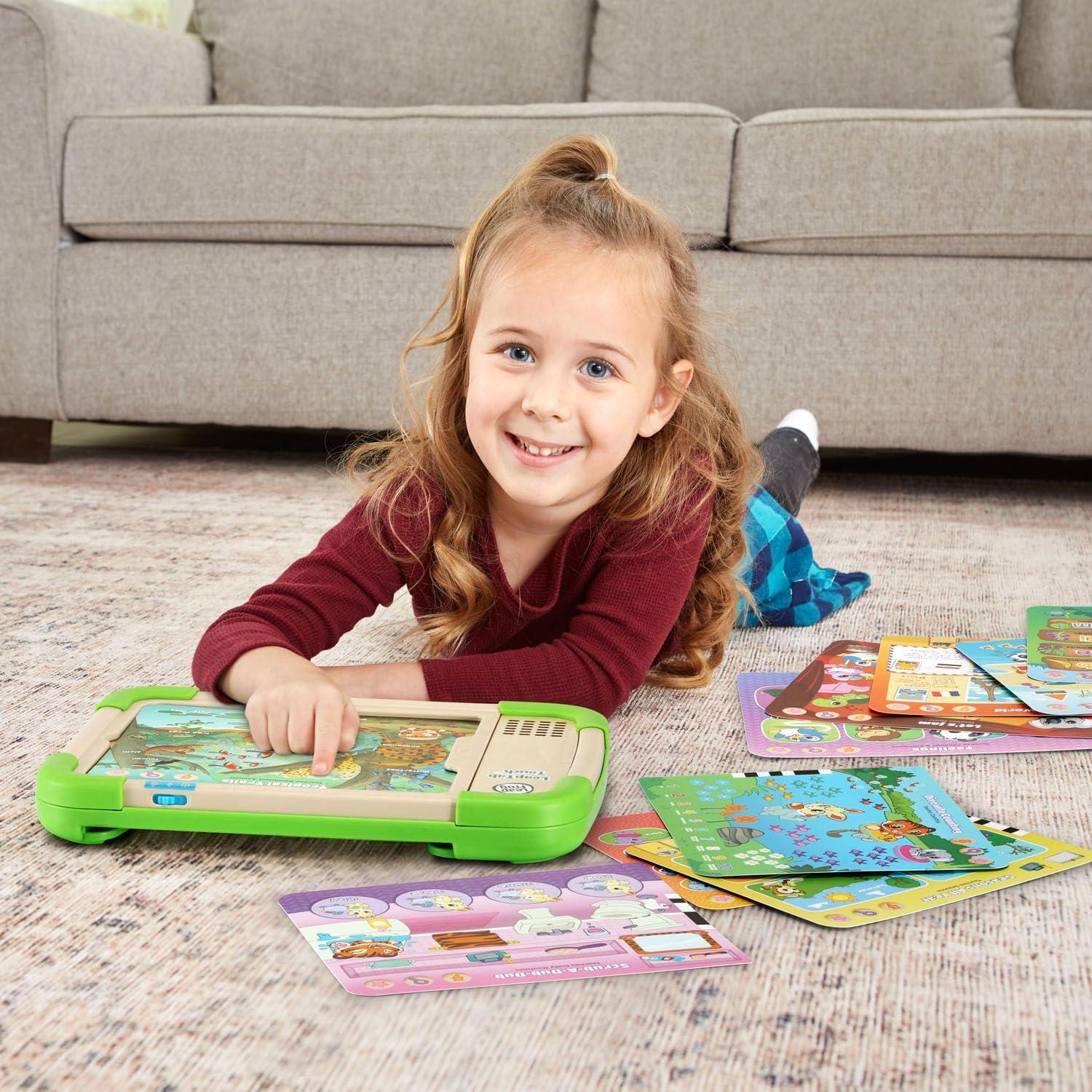 New skills are at your preschooler’s fingertips with the screen-free LeapTab Touch™. Animal friends grab their attention and introduce kids to tons of subjects they’ll explore in school on 10 double-sided cards. Tap the hundreds of touch-to-learn spots on the sturdy, colorful touch pages to play activities, games and puzzles. Activities encourage kids to learn about preschool skills from letters and number to manners and feelings. Look for cards with a radio touch spot on them to play eight sing-along songs that explore what to wear for the weather, daily routines and more. Clean-up and storage are simple with a built-in card holder that keeps pages together while playing and locks them in place to keep them from falling out. This product is made with 100% FSC-certified wood that comes from well-managed forests. Intended for ages 3+ years. Requires 2 AA batteries. Batteries included for demo purposes only. New batteries recommended for regular use.