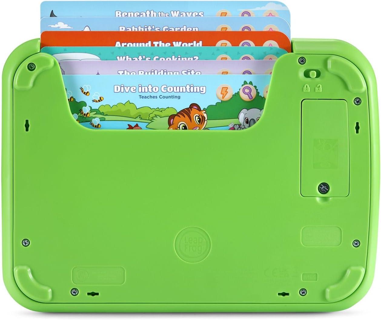 Friendly animal pals introduce kids to the subjects they’ll explore in preschool on this screen-free tablet