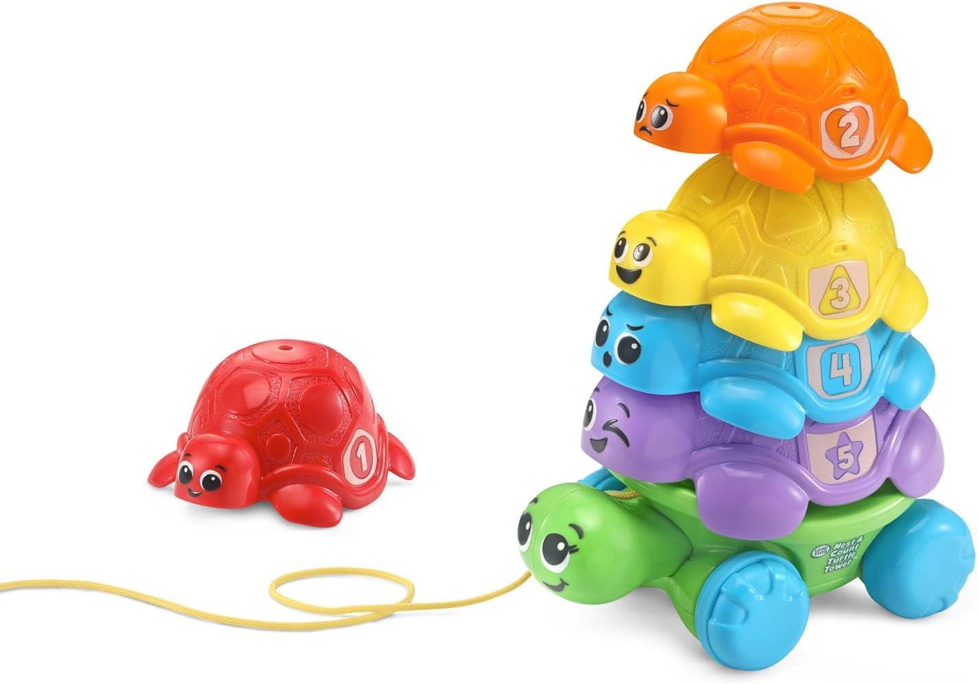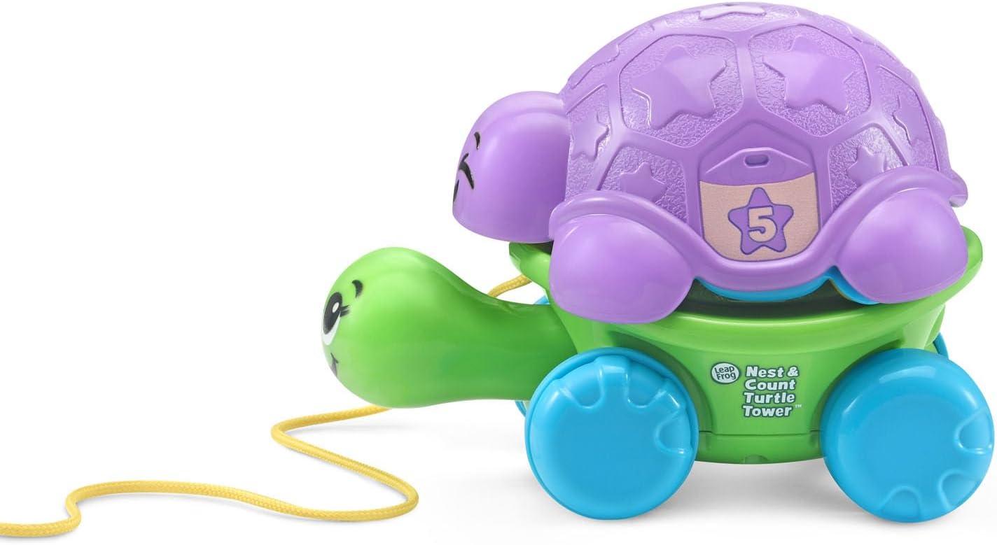 Stack them up or nestle them snuggly together, this family of turtles offers four ways to play. Nest the turtles together creating a colorful game of hide-and-seek. Pile on the fun by putting the turtles on top of Mama to build motor skills and see her head poke out for a peek-a-boo surprise. Let’s get rolling! Pull on the cord and watch them wobble as they follow behind. Kids can really count on these turtles with numbers 1-5 on their shells. Intended for ages 12+ months. Batteries not required.