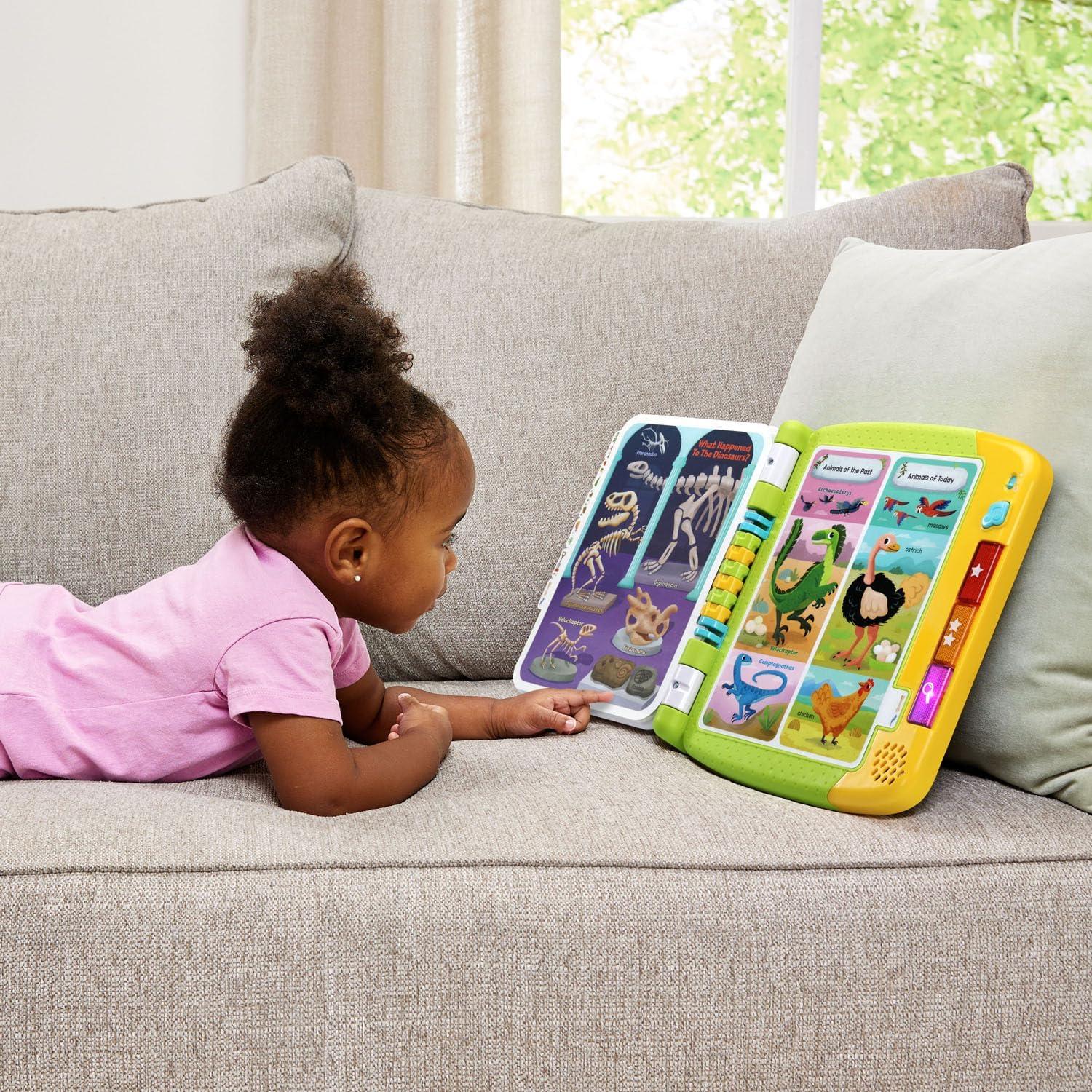 Dig into the prehistoric world of dinosaurs and discover exciting facts in this dino-mite book! Touch the colorful pictures on 14 interactive pages to explore what dinosaurs are, where they lived, what they ate and more. Dig deeper to hear fun facts and learn how to pronounce popular dinosaur names. Let’s practice saying it together—Steg-O-Saur-Us! Switch to Find-It mode and answer questions by finding the correct pictures throughout the book. Press the music button to rock and roar along to three songs. Bravo-saurus! Intended for ages 2+ years. Requires 2 AA batteries. Batteries included for demo purposes only. New batteries recommended for regular use.