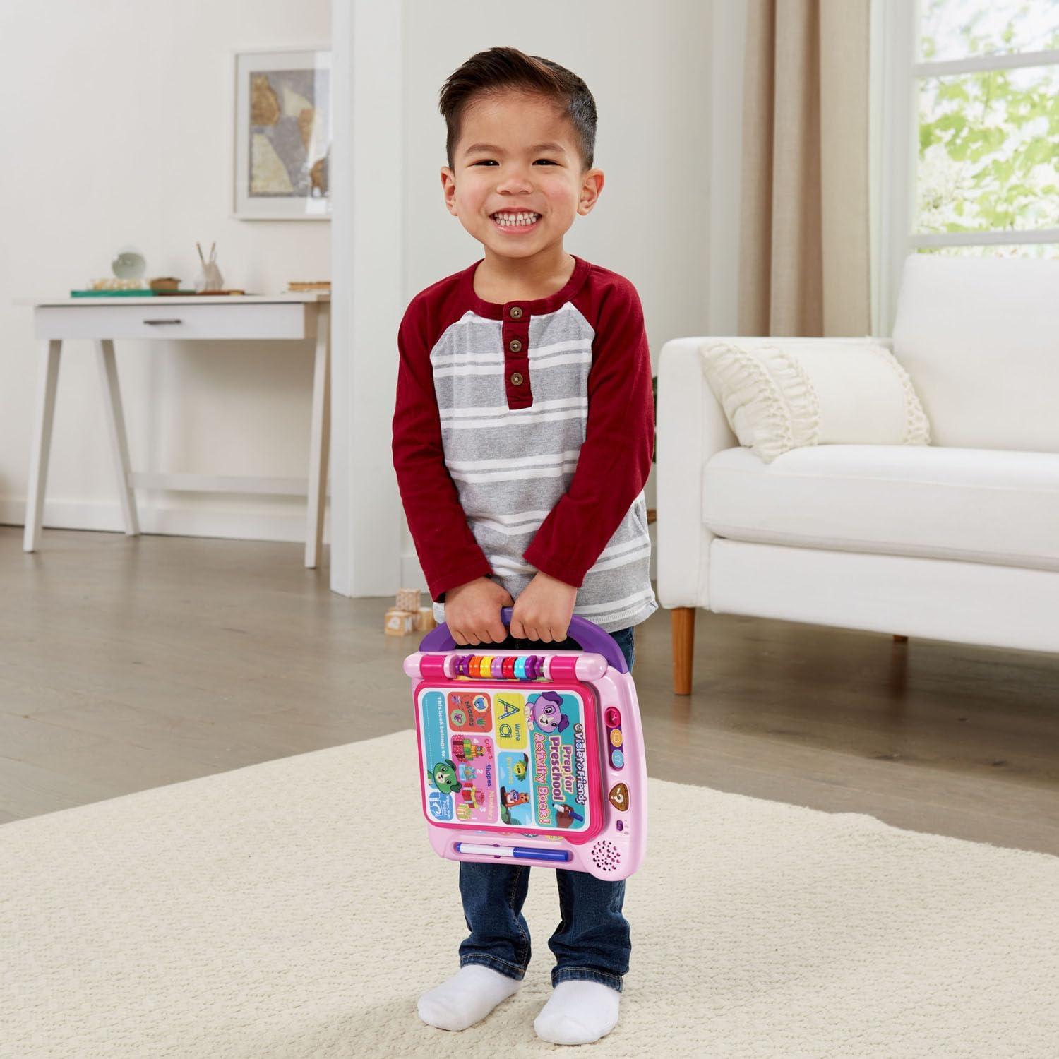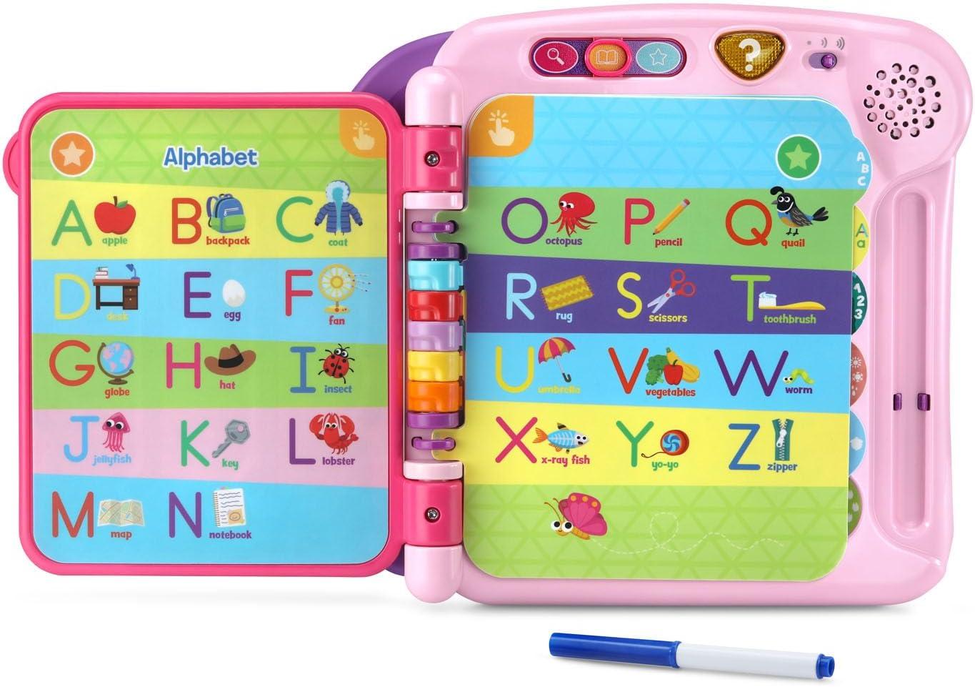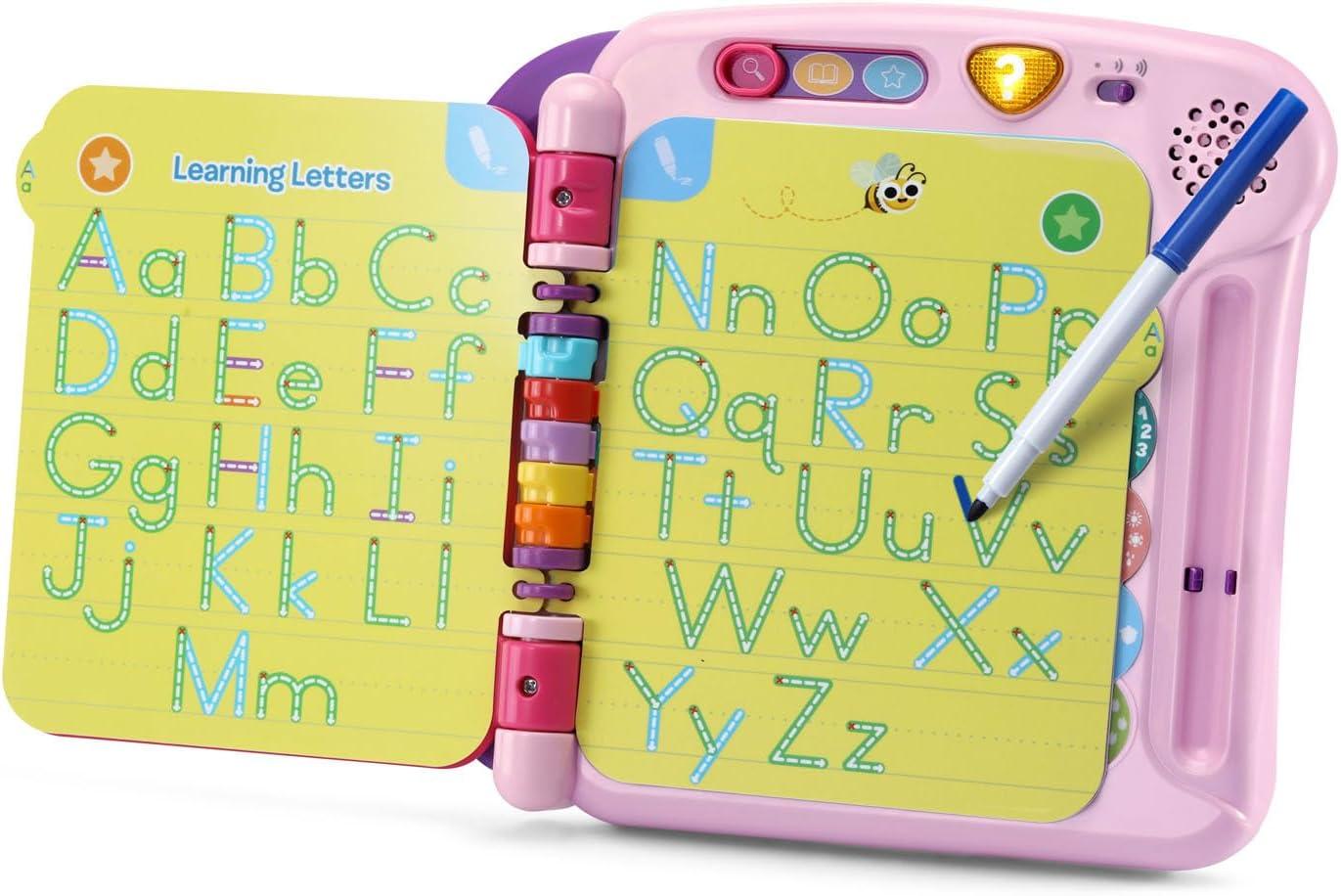 Make the preschool transition a breeze with the Violet and Friends Prep for Preschool Activity Book, Pink. Help kiddos build confidence with reusable activity pages to practice their school-ready skills. From letters to numbers to matching activities, preschoolers will find loads to do and re-do in this interactive 12-page book. Touch-sensitive pages encourage kids to explore the alphabet with letters and letter sounds, word building and finding rhymes. Help preschoolers strengthen writing skills with activity pages and an erasable marker that let them trace letters, match numbers to quantities, draw the right clothes for the weather, explore mazes and more. If kids need a clue, they can press the hint button for help. Touch, learn, write, erase and do it all over again! Intended for ages 3+ years. Requires 2 AA batteries. Batteries included for demo purposes only. New batteries recommended for regular use.